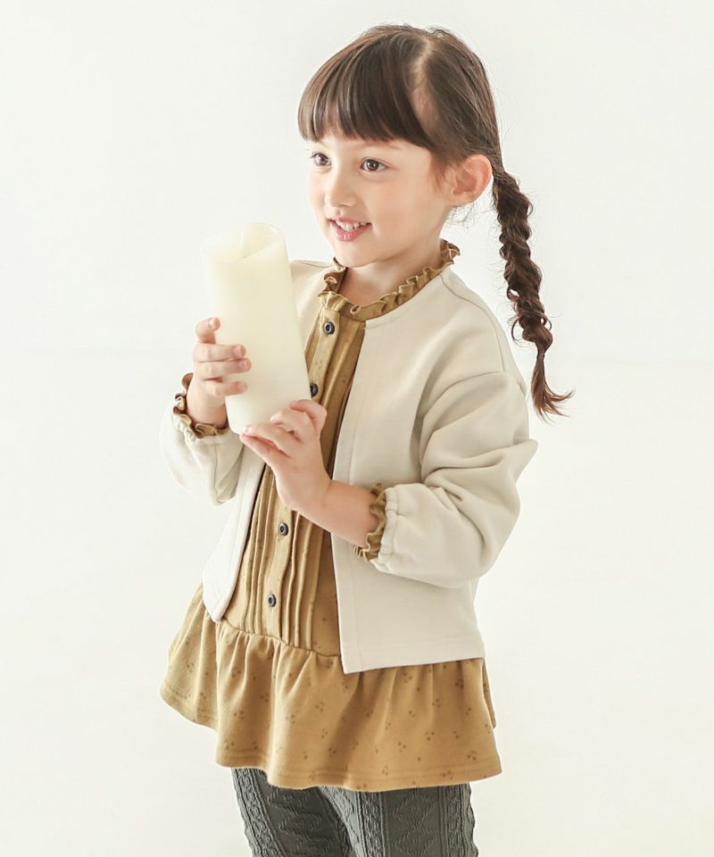 子供らしいジャンパースカートですが、裾フリルがとってもおしゃれでした! ボタンの部分もスナップボタンでとめやすかったです。 -