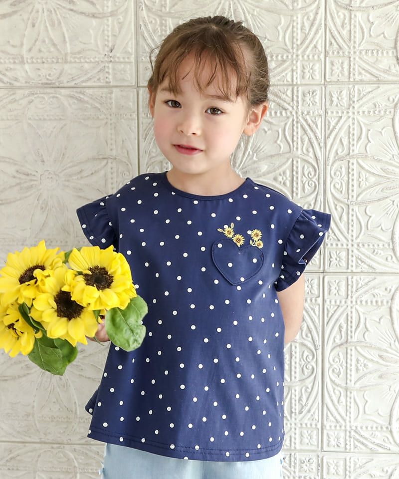 肌触りの良い生地で、ハートのポケットや刺繍、少し広がったシルエットもかわいいです。