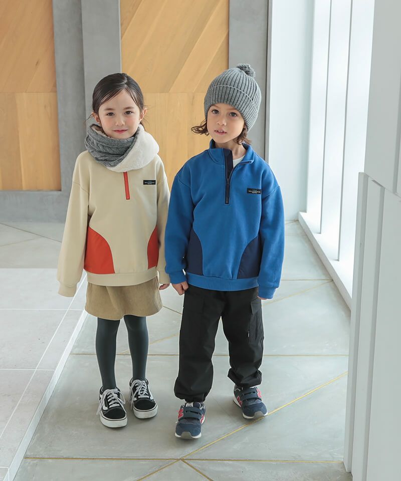 デザインと色がおしゃれで気に入って購入しました。綿の肌触りもいいです。厚手ではありませんが、着心地がよさそうです。 チャックの安全タグ?もちゃんとついてます。アイボリーとオレンジのほうもかわいいですね。孫は、ブルーが好きなのでこちにしました。 -