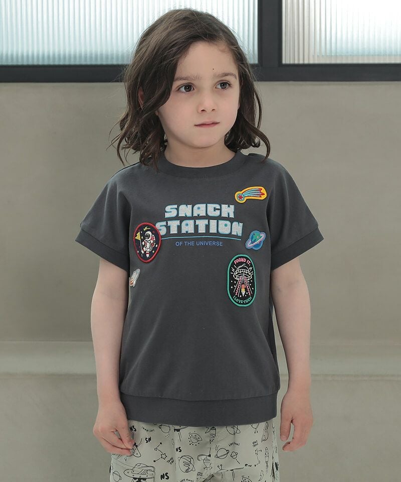 n.o.u.s 宇宙モチーフワッペン半袖Tシャツ