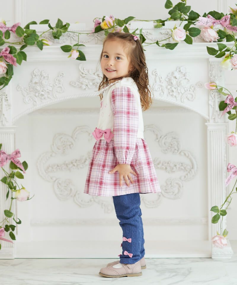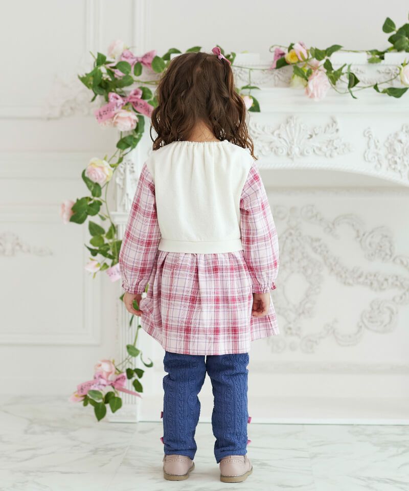 coeur a coeur レイヤード風チェック柄ドッキングワンピース