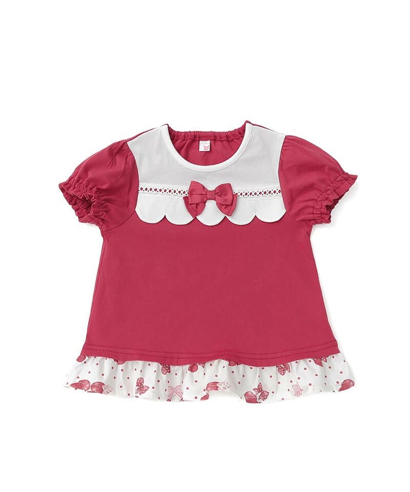coeur a coeur スカラップデザイン裾フリル半袖Tシャツ