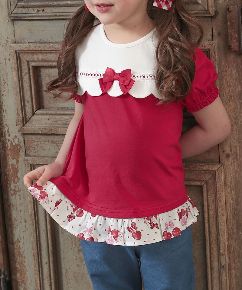 coeur a coeur ドットチェリープリント半袖グレコ