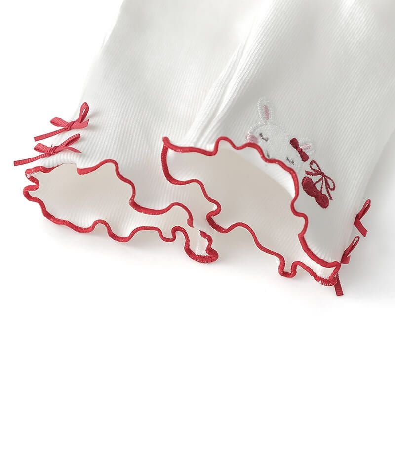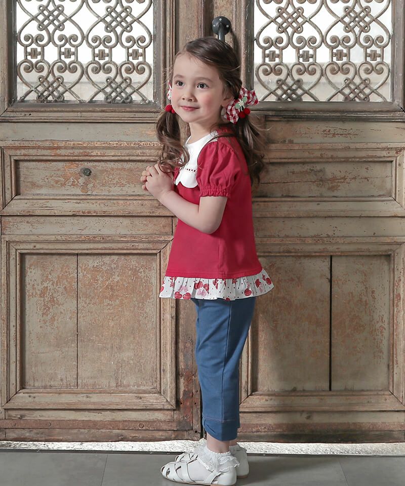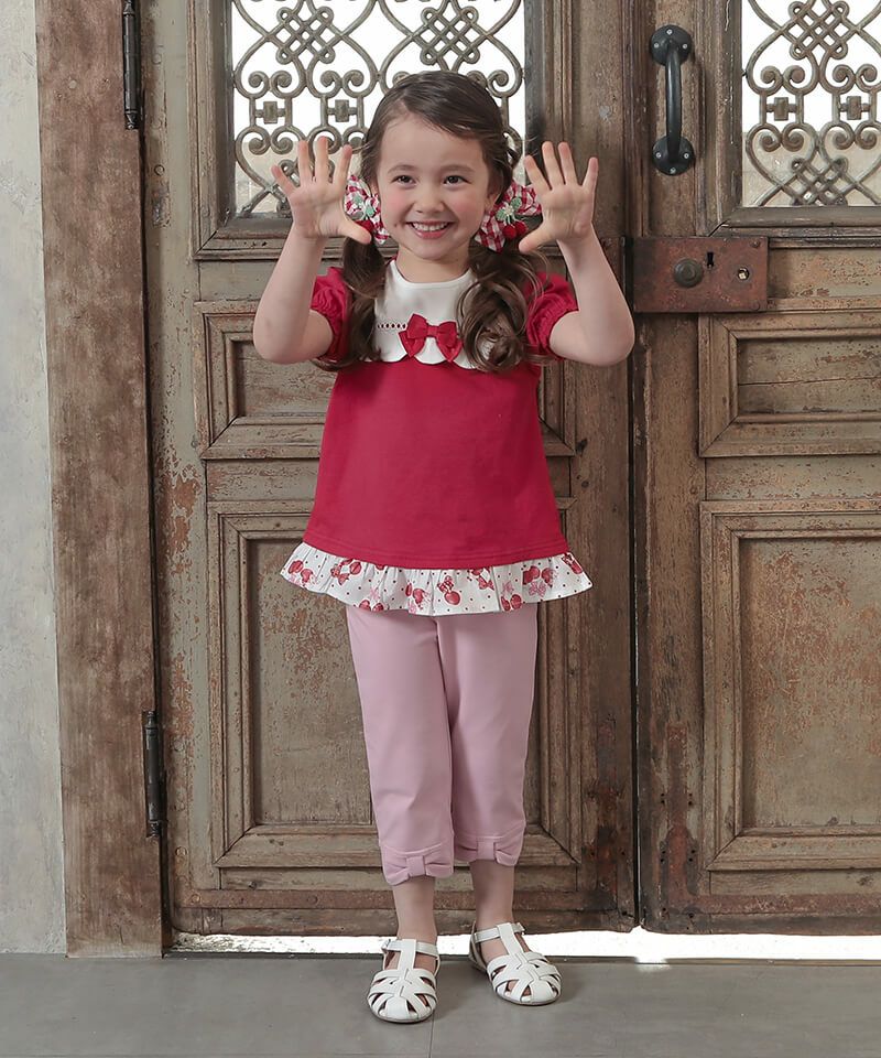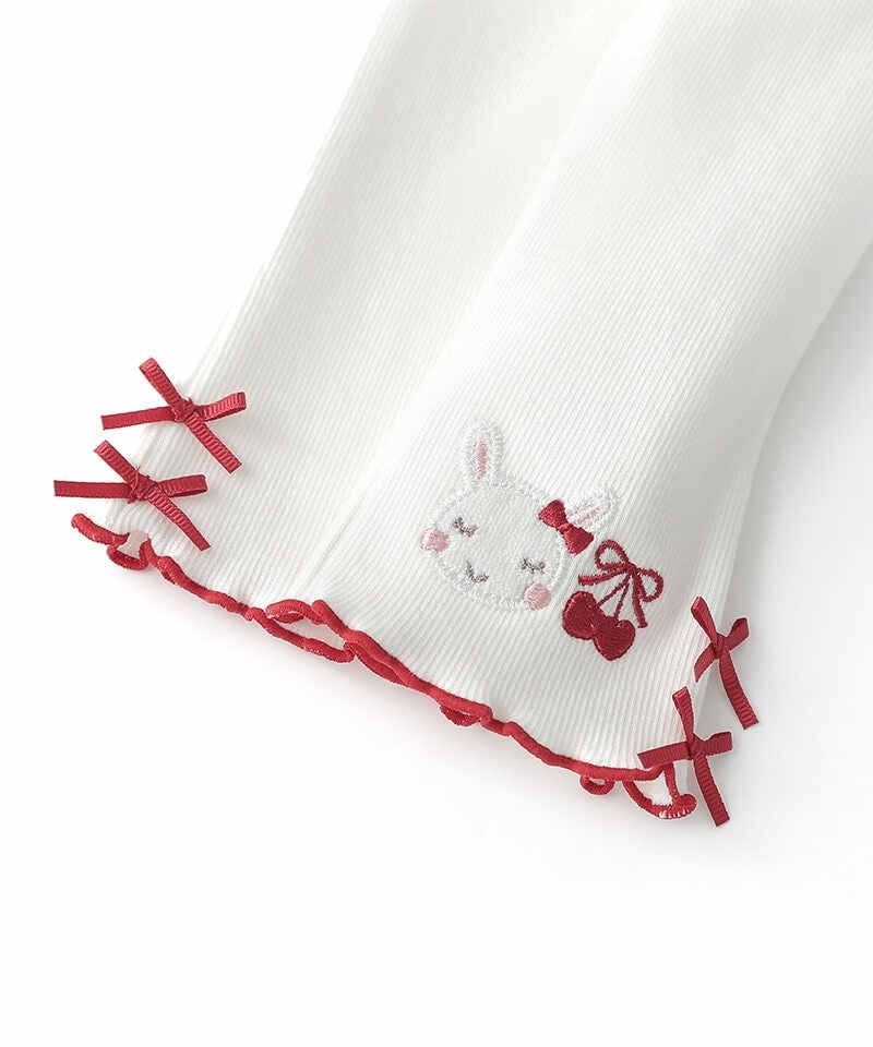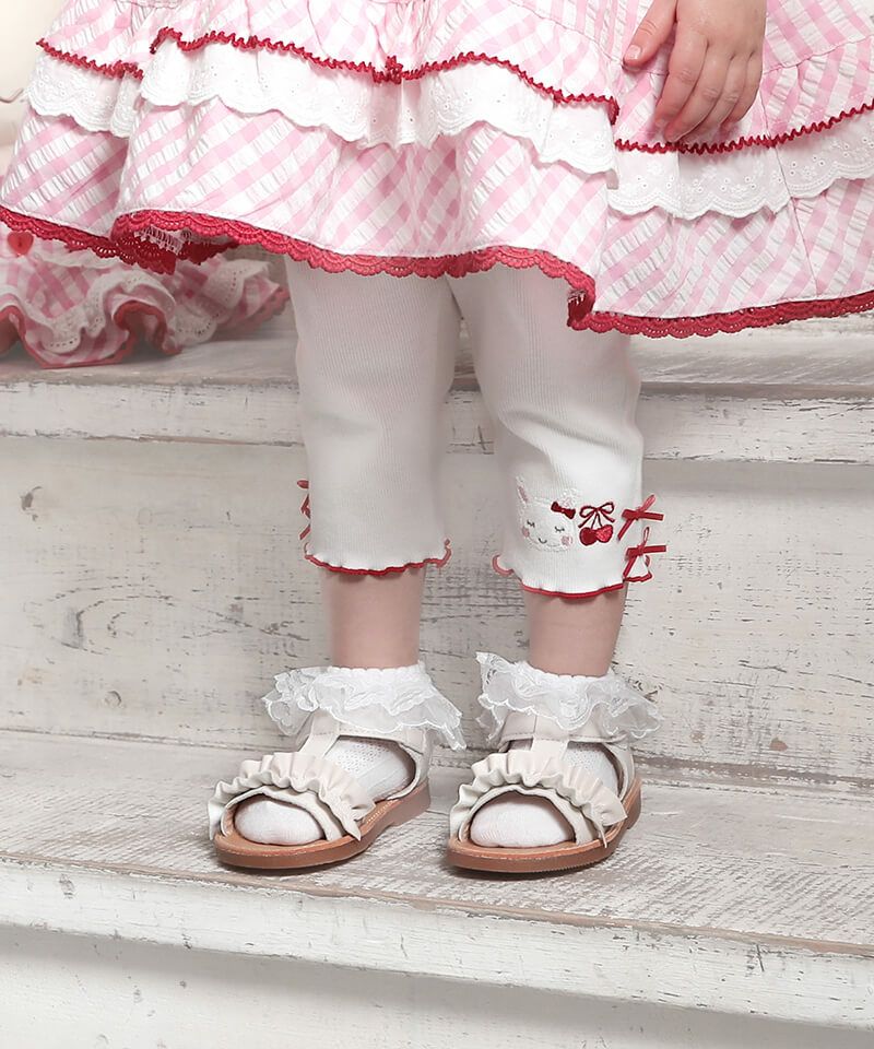 coeur a coeur チェリー刺繍リボン付き6分丈スパッツ