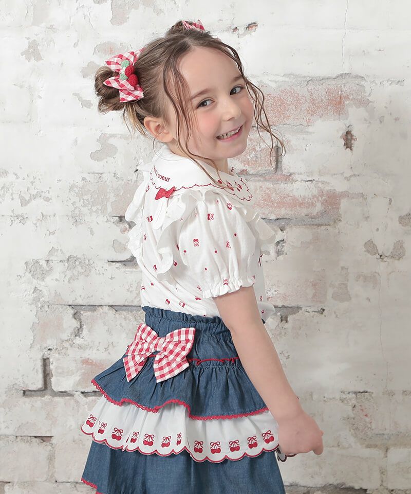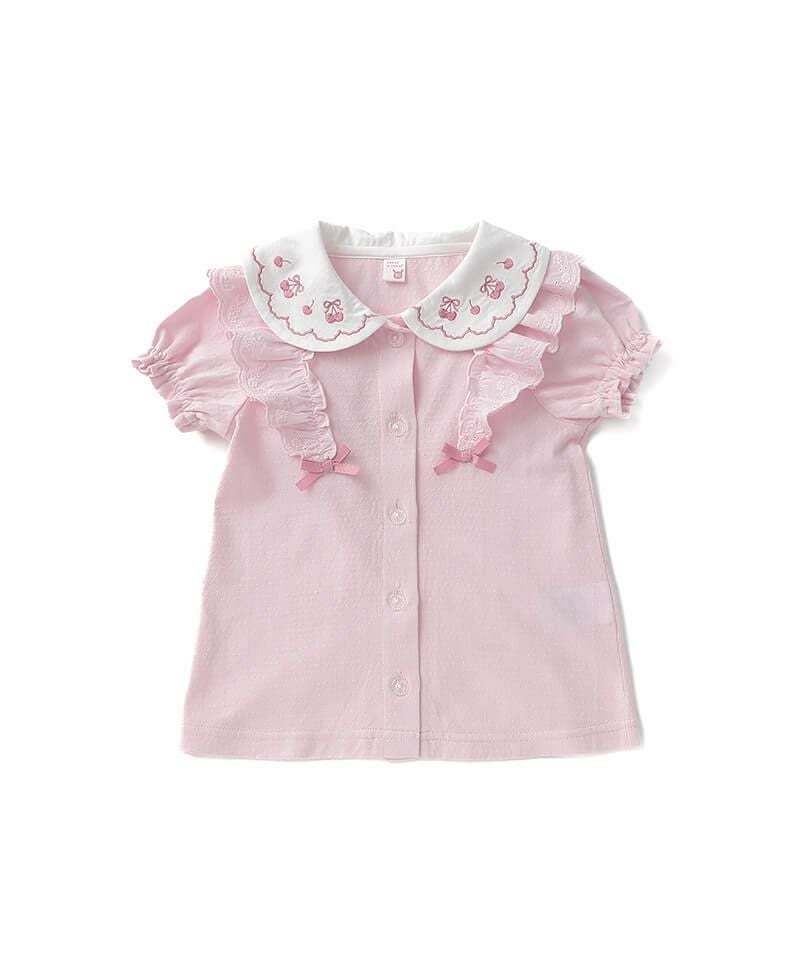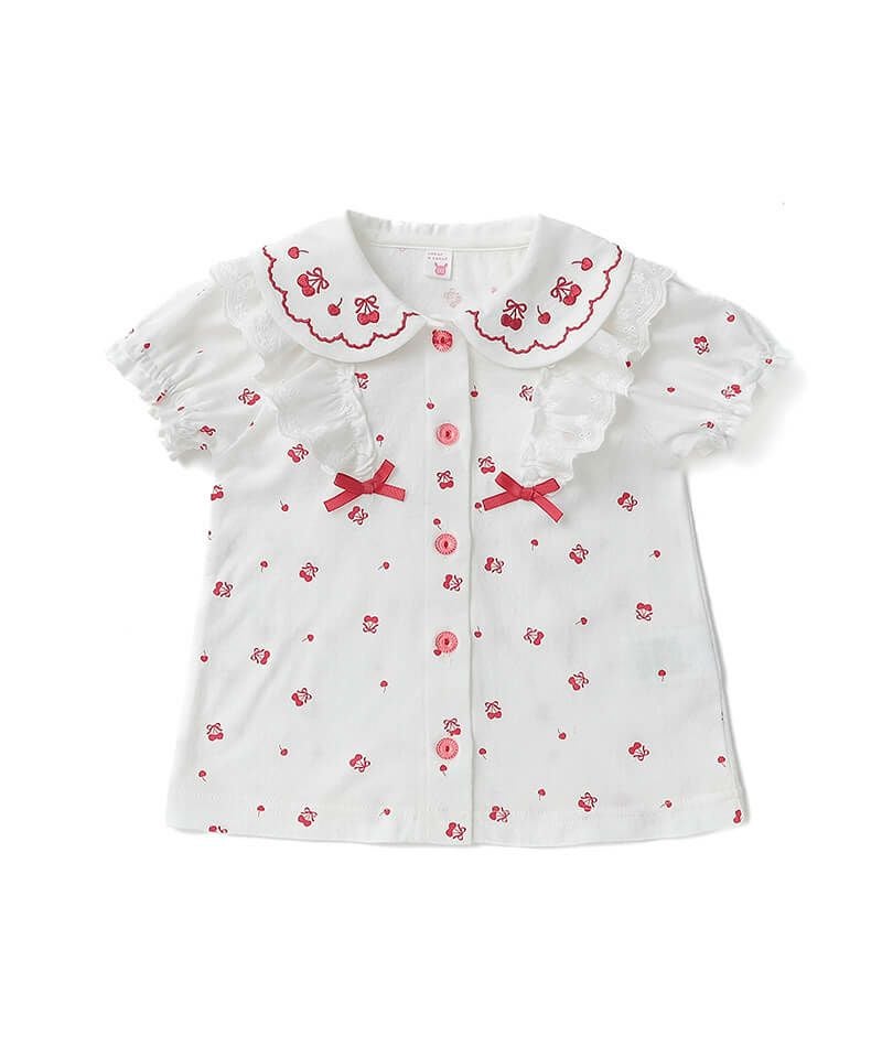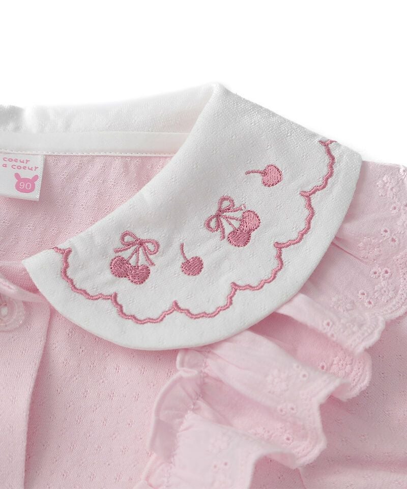 coeur a coeur チェリー刺繍襟半袖ブラウス