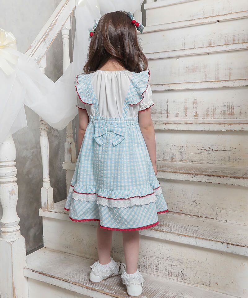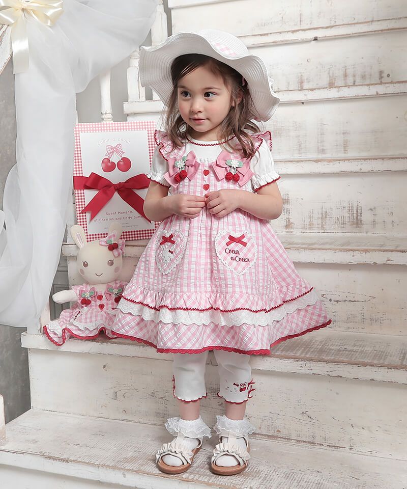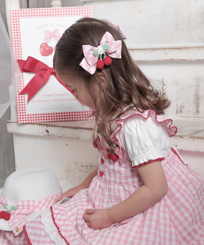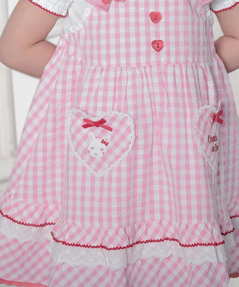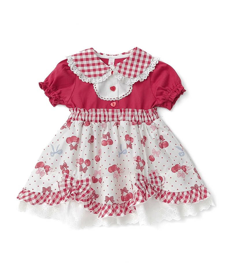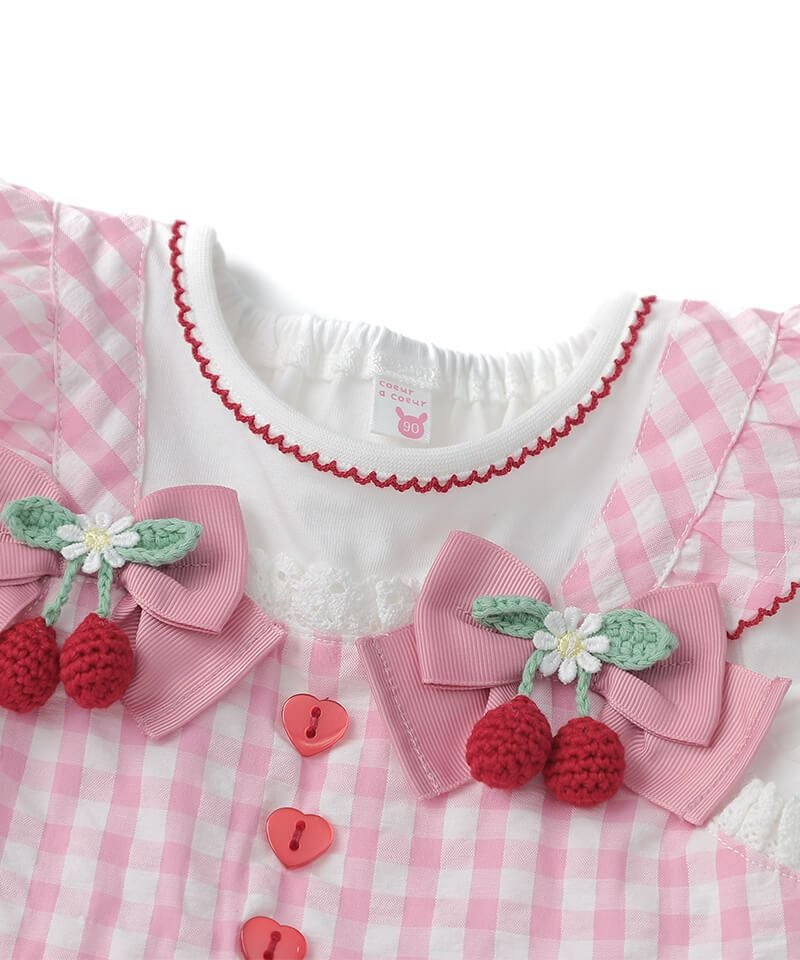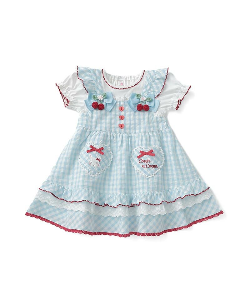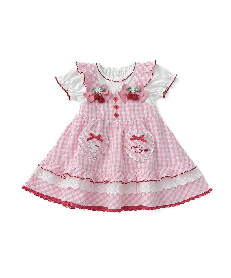 coeur a coeur チェリーリボンギンガムチェックドッキングワンピース
