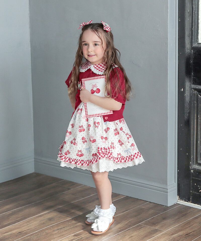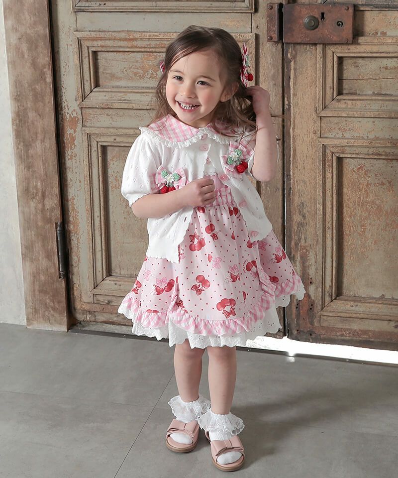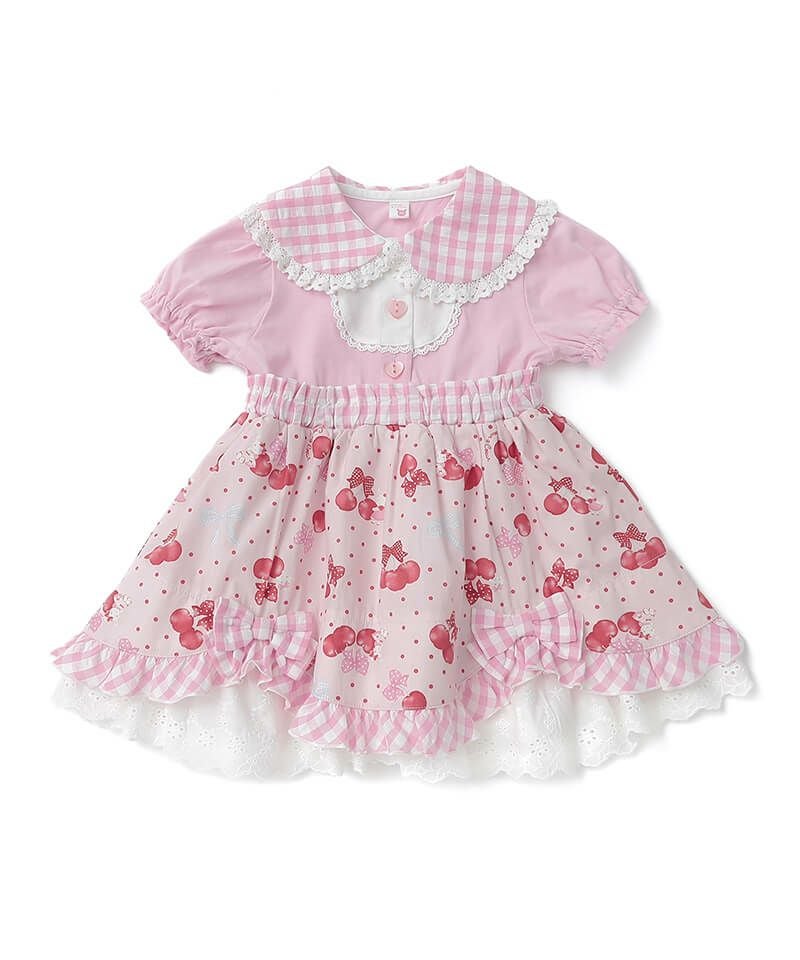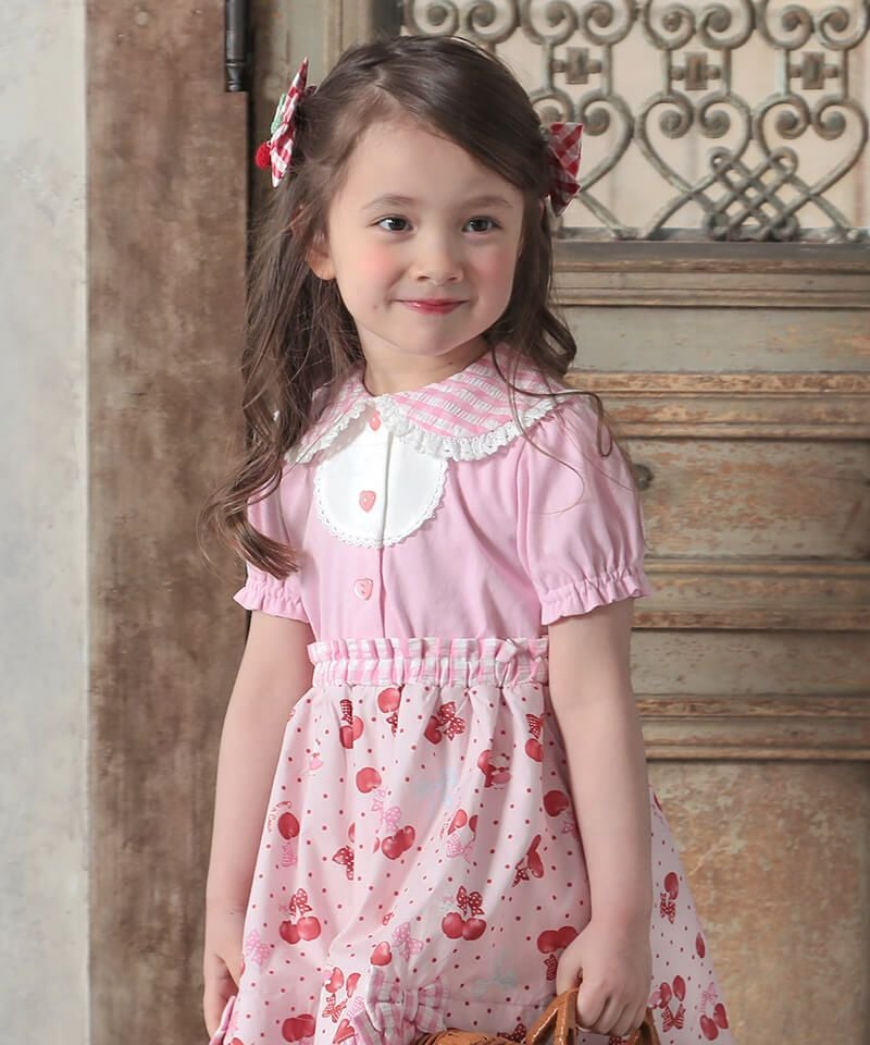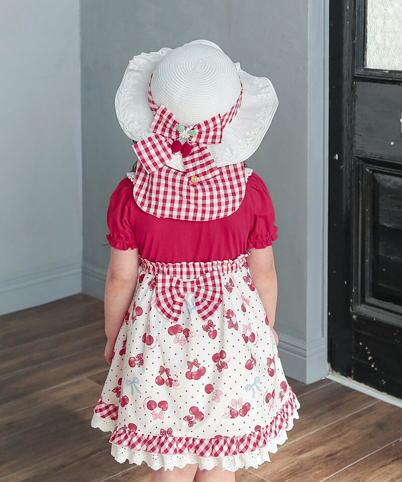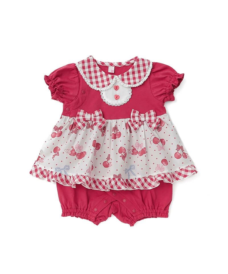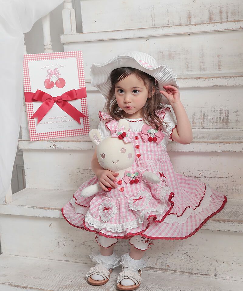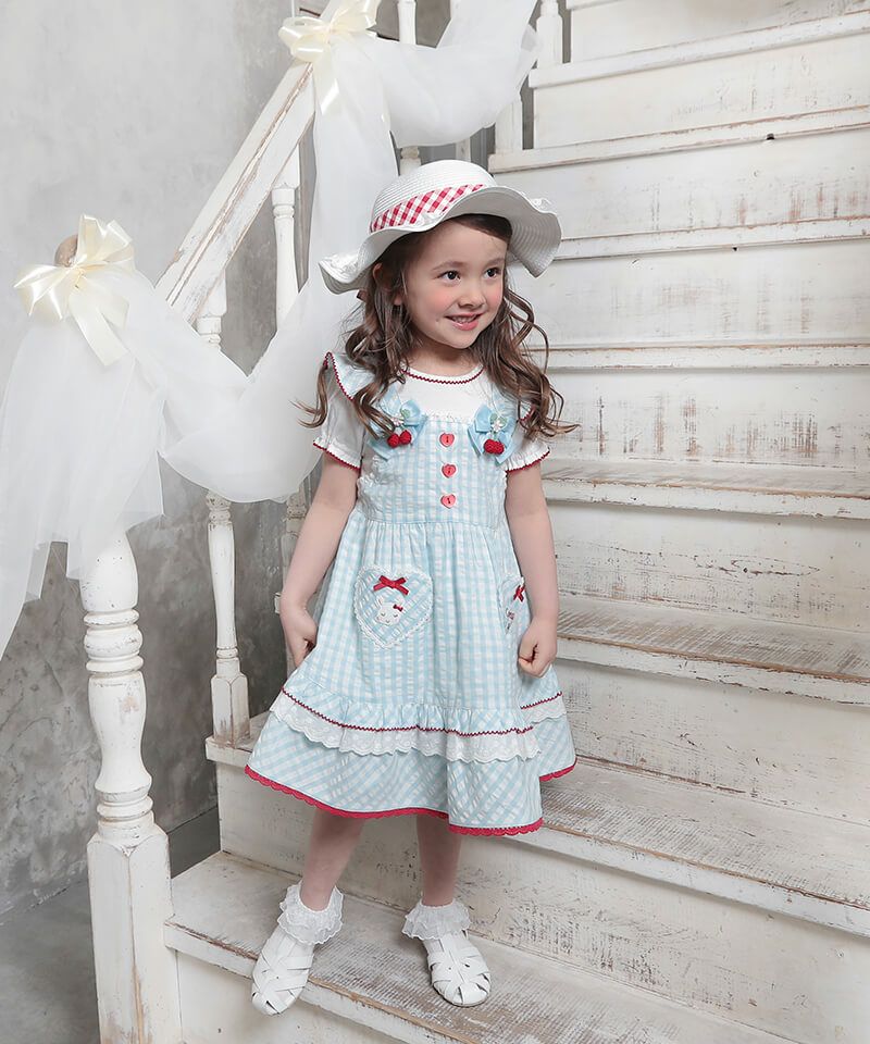 coeur a coeur チェリーリボンギンガムチェックドッキングワンピース