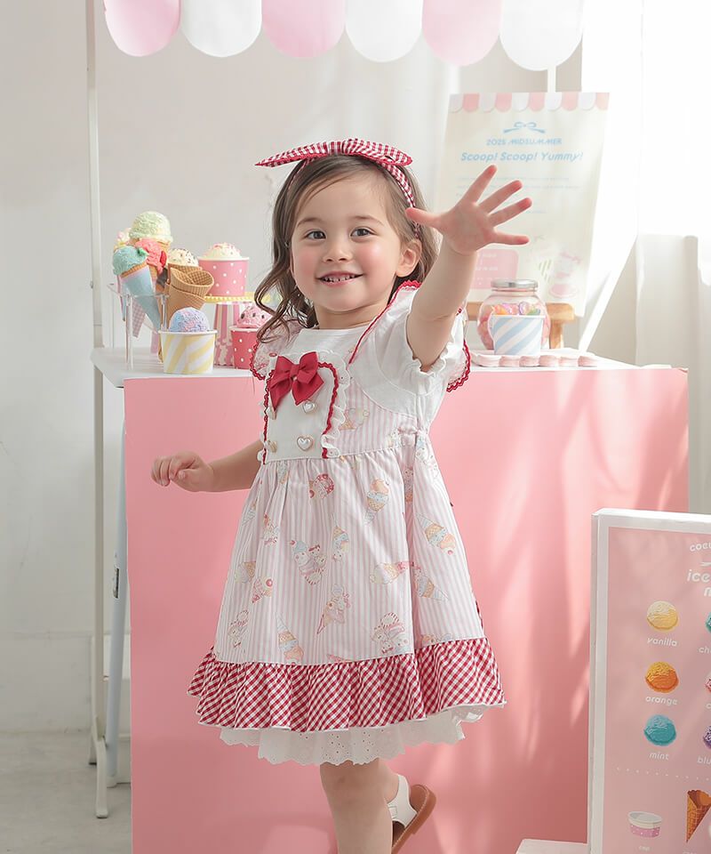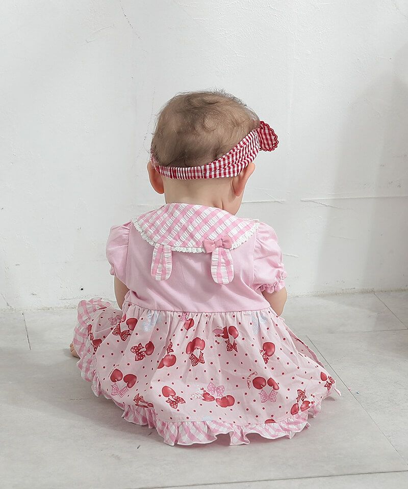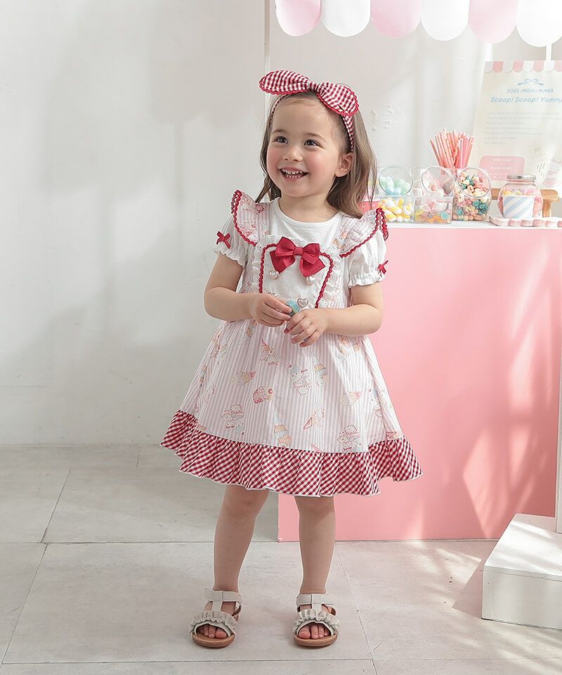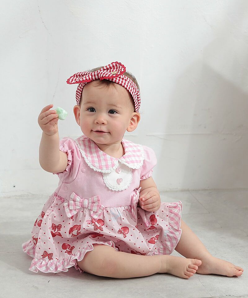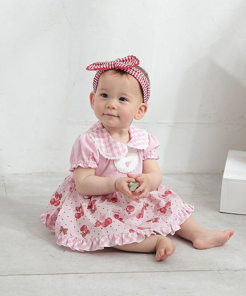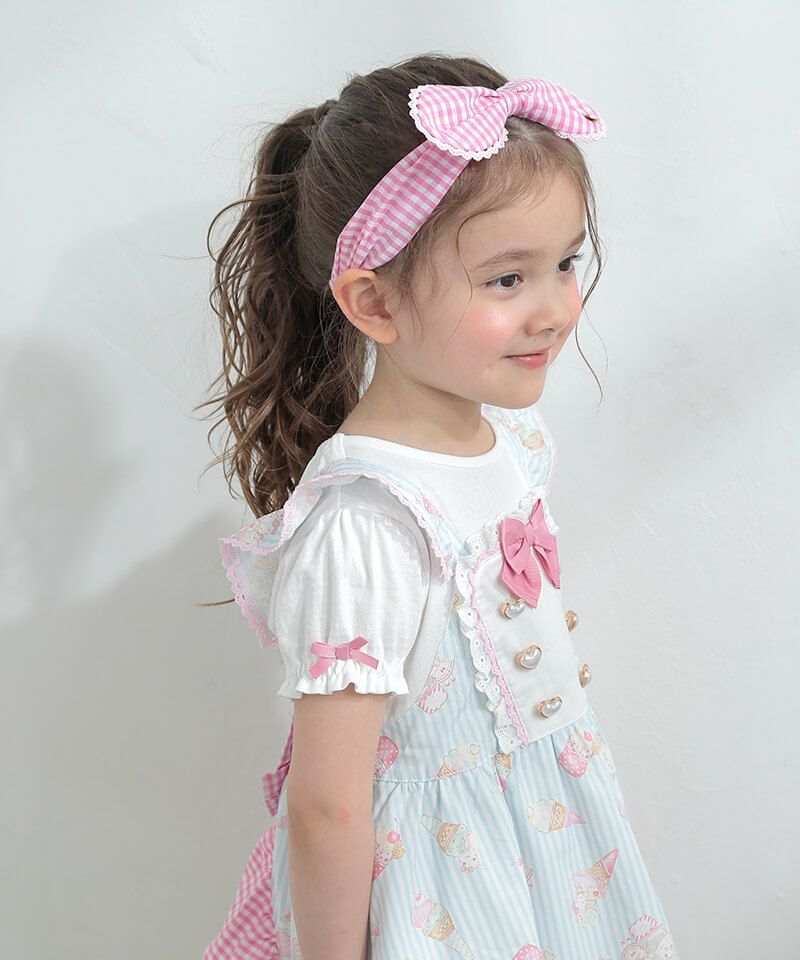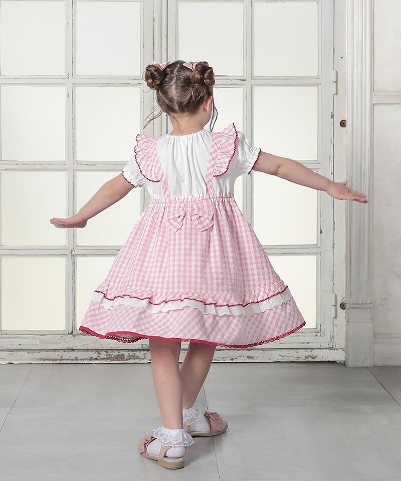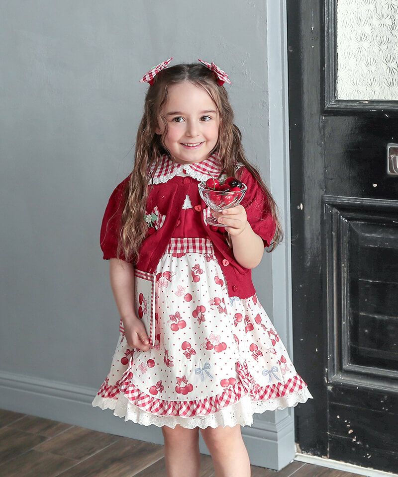 coeur a coeur チェリーリボンギンガムチェックドッキングワンピース
