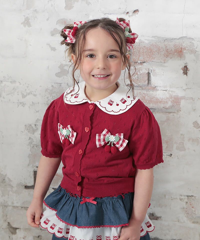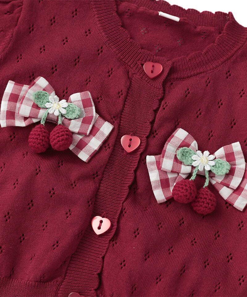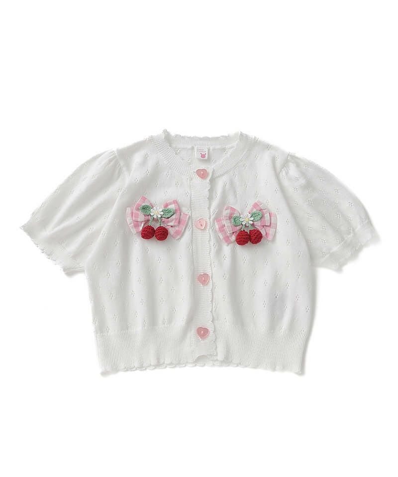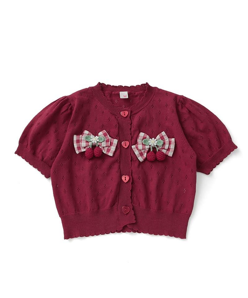 coeur a coeur チェリーリボン半袖サマーニットカーディガン
